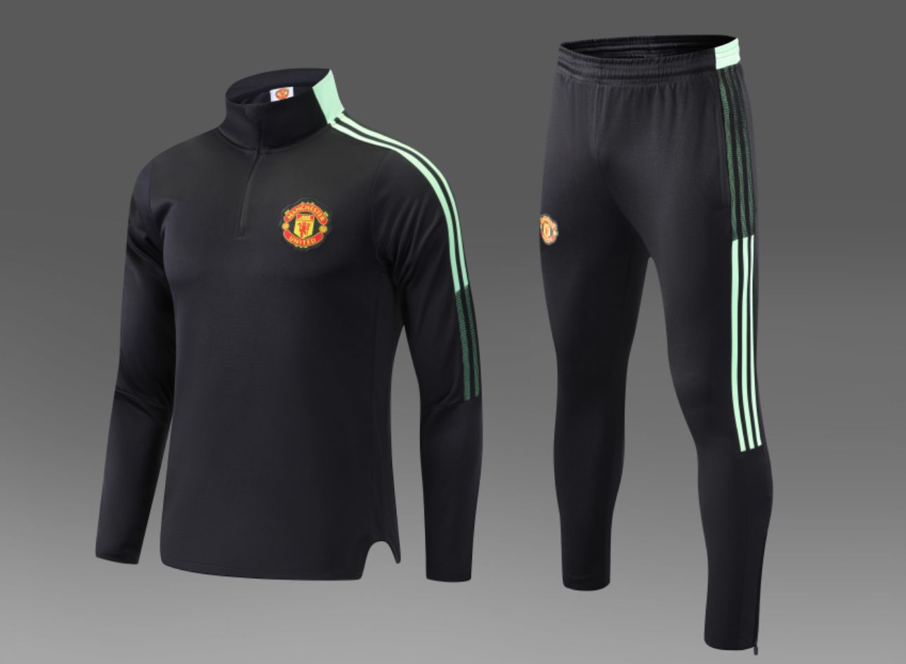 ADULT BLACK WITH GREEN STRIPES MAN UNITED TRAINING SUIT